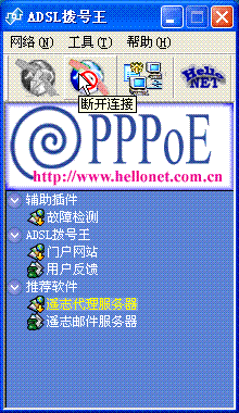 如果你要断开PPPOE连接,那么就点上主界面上方的第二个图标“断开连接”。