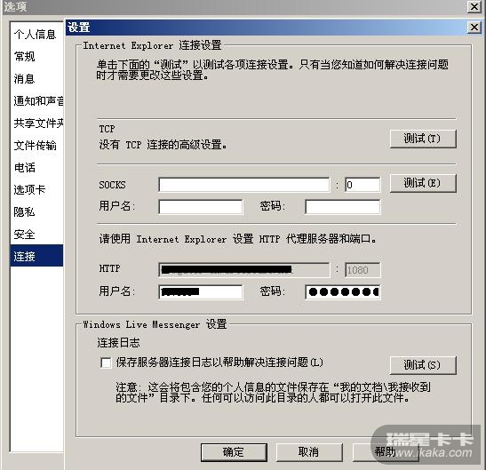 这是MSN的设置吧,卡卡没这么复杂,你IE怎么上网就就怎么设,一般是默认就可以了。
