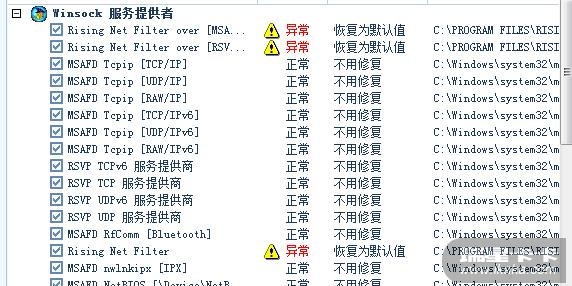 不需要修复,vista系统下确实是这样的,不是报自己异常,而是报winsock2注册表键值不是系统默认状态