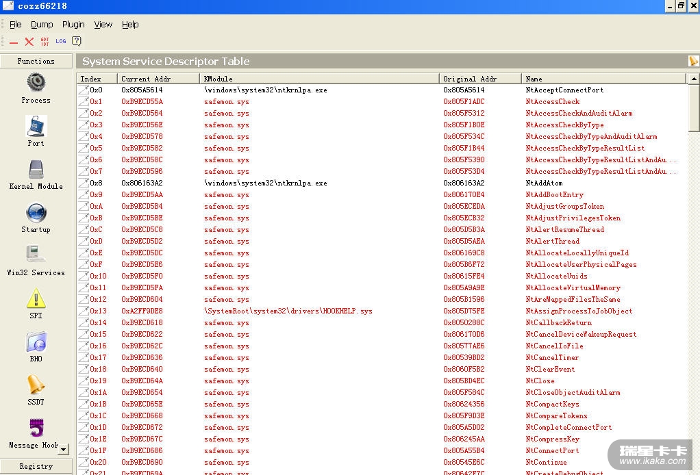 尽管它改写了beep.sys,但SSDT并未恢复。SSM、瑞星、TINY等监控依然有效(图2)。