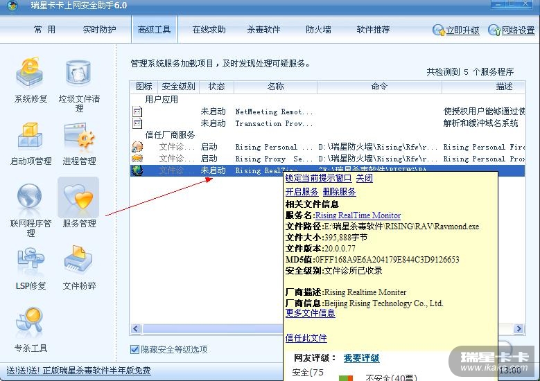 Ravmond.exe是计算机监控服务程序,负责为多用户打开小伞,增强保护小伞不被关闭,正常的