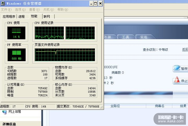 windowsxp 虚拟机 安装瑞星2008免费版和卡卡6。0
