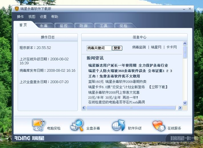 当前瑞星版本为20.55.52(见截图5),当前最新版本