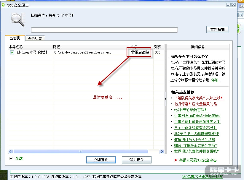 其实就是将记事本程序复制到上述目录,并且重命名让我们强大的360,扫描下C盘.....