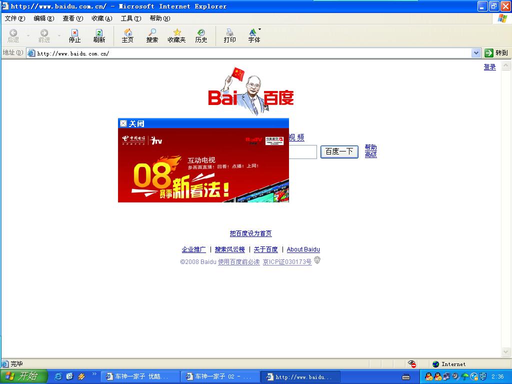 以前都不会,可这两天就碰上这怪事,无论打开什么网页都会出现电信ITV的小窗口(可是就出现一次,以后再开就没有了),是我的电脑中毒了吗?还是电信又搞什么名堂?
