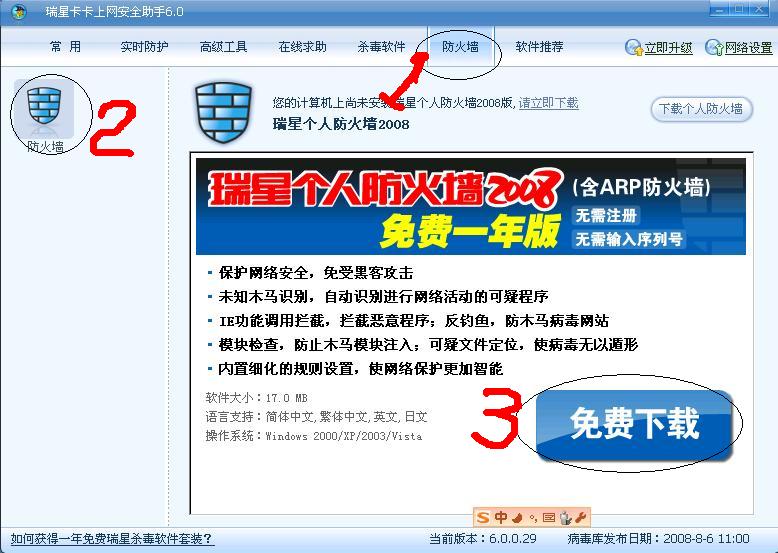 瑞星个人防火墙2009公测