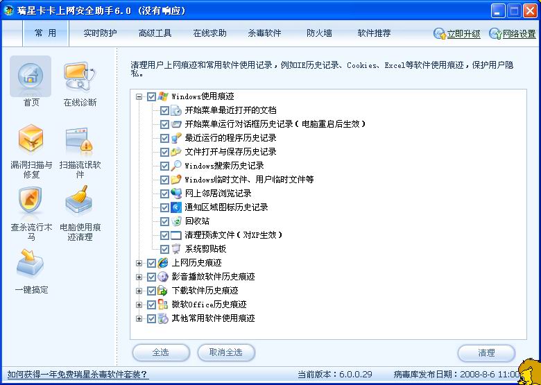 刚才发现卡卡的系统清理无法使用 一点击清理 程序就无响应