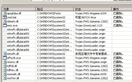 用DR.WEB扫描如以下截图,但是删除后正常的系统文件也受到破坏