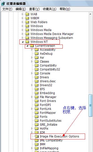 [HKEY_LOCAL_MACHINE\SOFTWARE\Microsoft\WindowsNT\CurrentVersion\ImageFileExecutionOptions\,选中该项,右键→权限→高级,取消administrator和system用户的写权限即可。