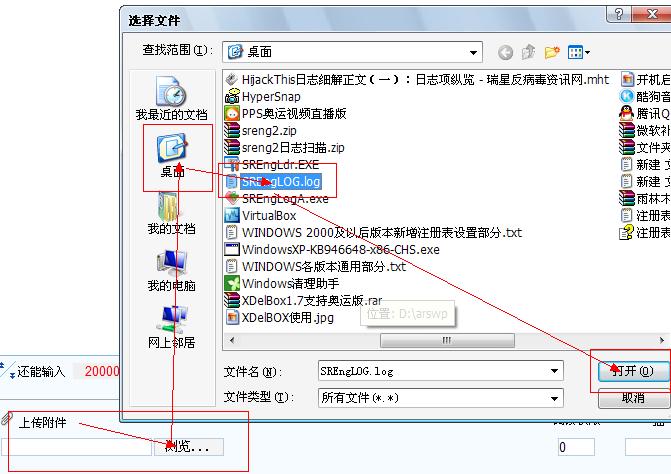 把报告保存到桌面之后,在把该日志上传到反病毒论坛板块下,按照箭头路径操作。