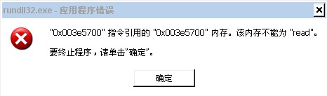 "0x003e5700"指令引用的"0x003e5700"内存。该内存不能为"read"。要终止程序,请单击"确定"。