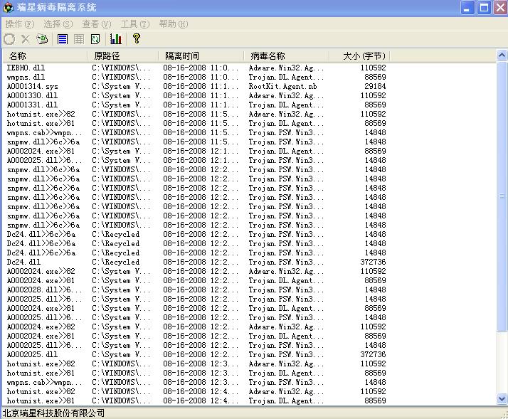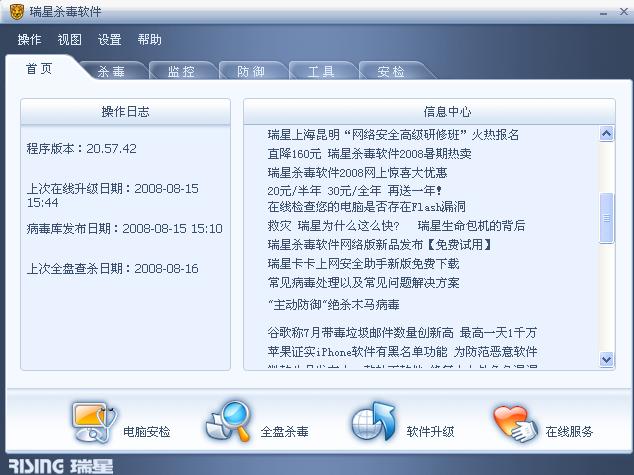 3.病毒库版本:瑞星2008版 20.57.42 (2008-08-16)