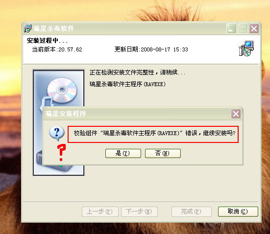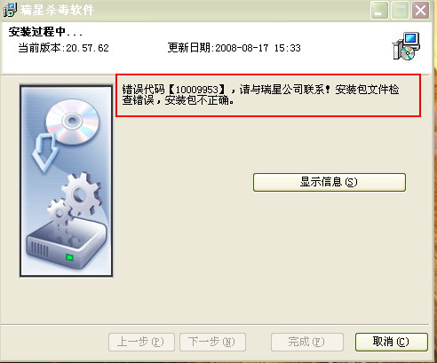 瑞星安装时提示错误!请技术工程师援助