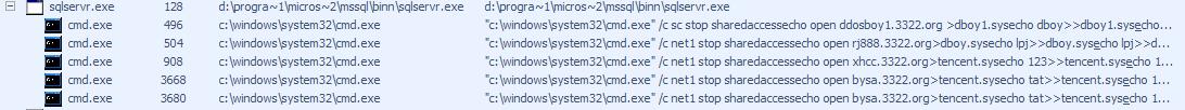 我并没有启动cmd,这是打开sqlservr后自动出现的几个cmd命令,而且里面涉及到的一些可执行文件比如tmd.exe,很明显的是病毒。