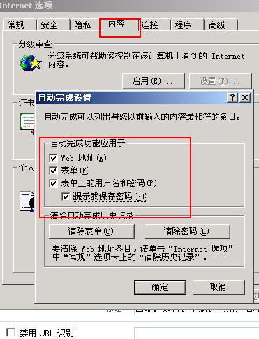 原先,我的电脑能记主用户名和帐号,这样,用起来很方便,不知什么原因,也不知道何时起,每次要重输,挺麻烦.我也在工具-Internet选项(O)-内容-自动完成-全选里设置,还是不行.是不是注册表里出了问题?但我没有动过注册表,还有360,优化大师,瑞星杀毒会不会哪儿限制了保存.谢谢各位帮助解决.