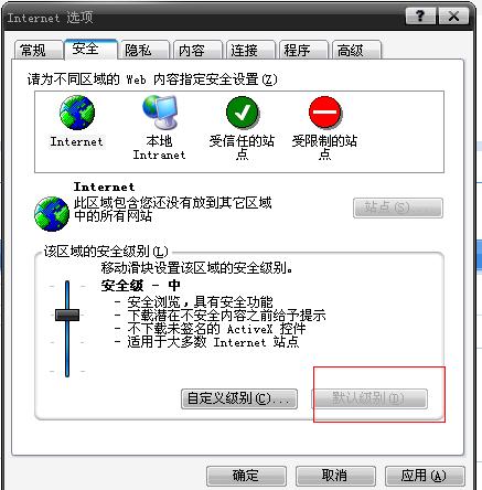 无效,我已经改中了,默认的还是中高级别的,另外,我的是IE7不是IE6