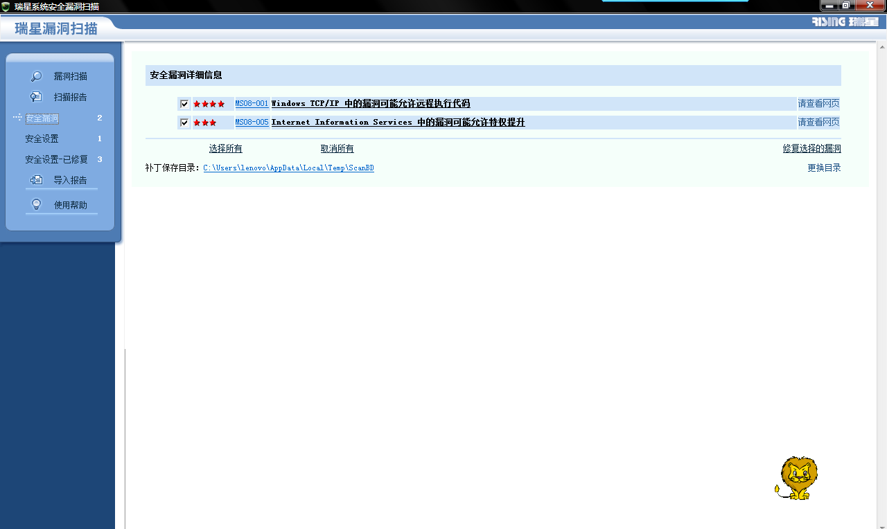 运行瑞星漏洞扫描后就这样