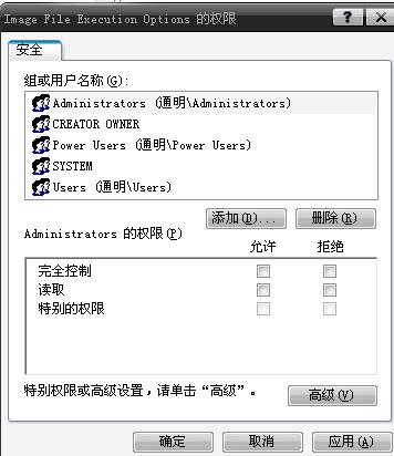 大家好我今天来写一篇关于一些聊友在最近一段时间里面经常出现杀毒软件监控被关闭,一杀毒时就又被关闭或者出错,安全网站无法打开,这些问题解决方法. 我们先从问题的根源来了解解决,我们先了解病毒是怎样阻止杀毒软件运行的. 病毒他也是程序员编写的而且病毒的运行脱离不了系统,那么病毒关闭杀毒软件也脱离不了系统,那么他是在哪屏蔽的呢用的是系统什么功能呢, 在windows系统中有一项功能叫做 镜像劫持,这个功能的所在地在系统核心中,注册表在注册表中更改一个键值就可能改变系统某一样设置,如果更改不好可能就出现系统奔溃,所以大家在使用注册表时要记住备份,备份方法在注册表中点击文件----然后点导出就可以了最后保存到一个地方 进入注册表方法是:开始----运行-regedit--------确定就行了或者在C盘:/windows/regedit.exe里找到这文件进入也可以,好下面我们来说说镜像劫持在注册表中具体位置,路径是:HKEY_LOCAL_MACHINE\SOFTWARE\Microsoft\Windows NT\CurrentVersion\Image File Execution Options在Image File Execution Options项下面只要任意输入一个需要劫持程序名称和在里面键入劫持到的地方就可以劫持正常程序了,有些病毒更可恶的是它劫持到的程序居然是他病毒的本体,就是说打开的程序不是本生的程序而是运行了病毒本体,所以我们当碰见杀毒软件打不开,而且在Image File Execution Options项里面看见以下这些项时我们立即删除他的键值360rpt.exe; 360Safe.exe; 360tray.exe; adam.exe; AgentSvr.exe; AppSvc32.exe; autoruns.exe; avgrssvc.exe; AvMonitor.exe; avp.com; avp.exe; CCenter.exe; ccSvcHst.exe; FileDsty.exe; FTCleanerShell.exe; HijackThis.exe; IceSword.exe; iparmo.exe; Iparmor.exe; isPwdSvc.exe; kabaload.exe; KaScrScn.SCR; KASMain.exe; KASTask.exe; KAV32.exe; KAVDX.exe; KAVPFW.exe; KAVSetup.exe; KAVStart.exe; KISLnchr.exe; KMailMon.exe; KMFilter.exe; KPFW32.exe; KPFW32X.exe; KPFWSvc.exe; KRegEx.exe; KRepair.COM; KsLoader.exe; KVCenter.kxp; KvDetect.exe; KvfwMcl.exe; KVMonXP.kxp; KVMonXP_1.kxp; kvol.exe; kvolself.exe; KvReport.kxp; KVScan.kxp; KVSrvXP.exe预防杀毒软件被劫持的方法我们可以在Image File Execution Options这个项设权限使病毒无法在这个项里面创建键值方法::::右键点击这个项然后点权限在权限里面设置,然后在第一个用户组administrator里面设置权限把这个用户组的权限设为最小取消所有的沟, 这样就可以了病毒在这里面无法创建键值了我们杀毒软件也不会被劫持干掉了.下面病毒还有一种方法来干掉杀毒软件病毒侵入系统后在硬盘上搜索杀毒软件的根目录安装目录,然后在里面创建一个名为 WS2_32.DLL的文件夹然后只要这样杀毒软件在运行是就会出错关闭,好大家会问,为什么这一个小小的文件夹就把不可一世的杀毒软件干掉了呢,这个WS2_32.DLL文件是做什么用的呢,下面我来说说这个DLL文件作用这个DLL文件的最大作用就是所有软件运行都必须先加载这个文件,大家又会问为什么我在系统没有删出这个文件,但我只要在软件根目录创建这个文件夹就会软件出错呢???,因为啊,系统有个特性,软件加载一些系统文件时他不会马上到系统system32目录中查找这个文件而是在软件根目录下查找这类文件,所以病毒只要在根目录下创建同名文件夹,软件加载时一搜索到因为我们这个同名文件内容是空的,所以功能无法调用软件就会出错,有些病毒在创建这个文件夹时会加载一些属性来隐藏这个文件夹不被删除加载一些属性为:隐藏属性,只读属性,设权限我们解决方法是我们先把隐藏文件显出来,方法:我的电脑任意磁盘上然后点击工具---文件夹选项----查看----显示所有文件和文件夹 这样系统所有加了隐藏属性的文件夹都原型毕露了,然后我们找到这个同名文件夹夹后右键文件夹给他加入系统管理员完全控制权限去掉只读属性最后删除就行了  你的下载权限 1 低于此附件所需权限 255, 你无法查看此附件后记:现在这种屏蔽杀毒软件方法使用已经很少了因为现在杀毒软件有自我保护措施都不允许任何程序在自己的目录下创建和修改文件,这种方法只适用与一些自我保护能力弱,的某些杀毒软件和防火墙