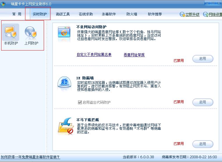 [求助] 为什么我的瑞星卡卡上网安全助手6.0不能开启实施防护