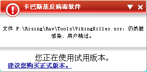 今天卡巴杀毒,查出来瑞星里的文件VikingKiller.scr感染了TROJAN病毒,我用瑞星没查出来.这是卡巴误杀吗?]