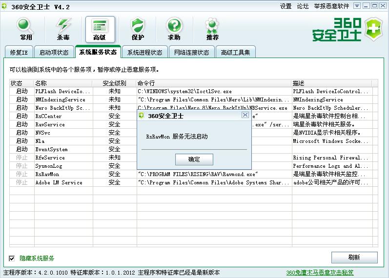 这个服务开机时会启动,然后自动停止,是正常的,不影响瑞星监控功能。
