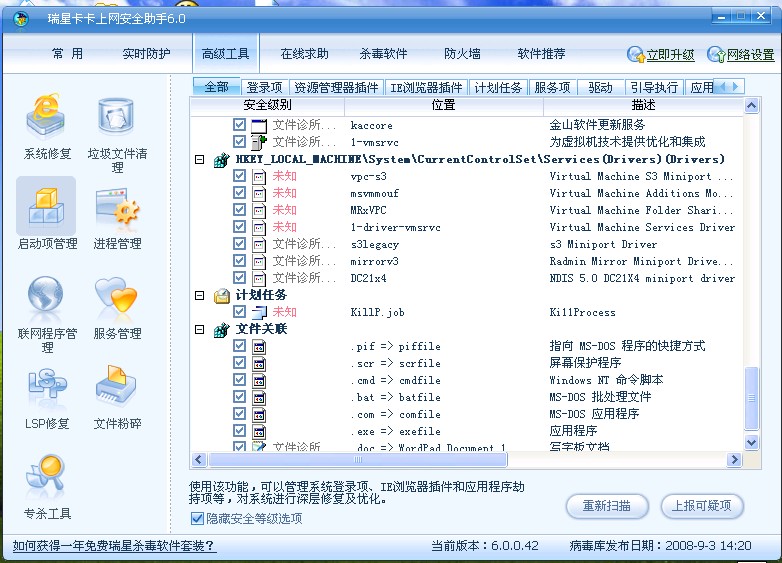 未知]都是正常的文件,假如大家有兴趣的话,可以搜索这些(这些是系统的驱动启动项目录,所以操作时,要小心。):