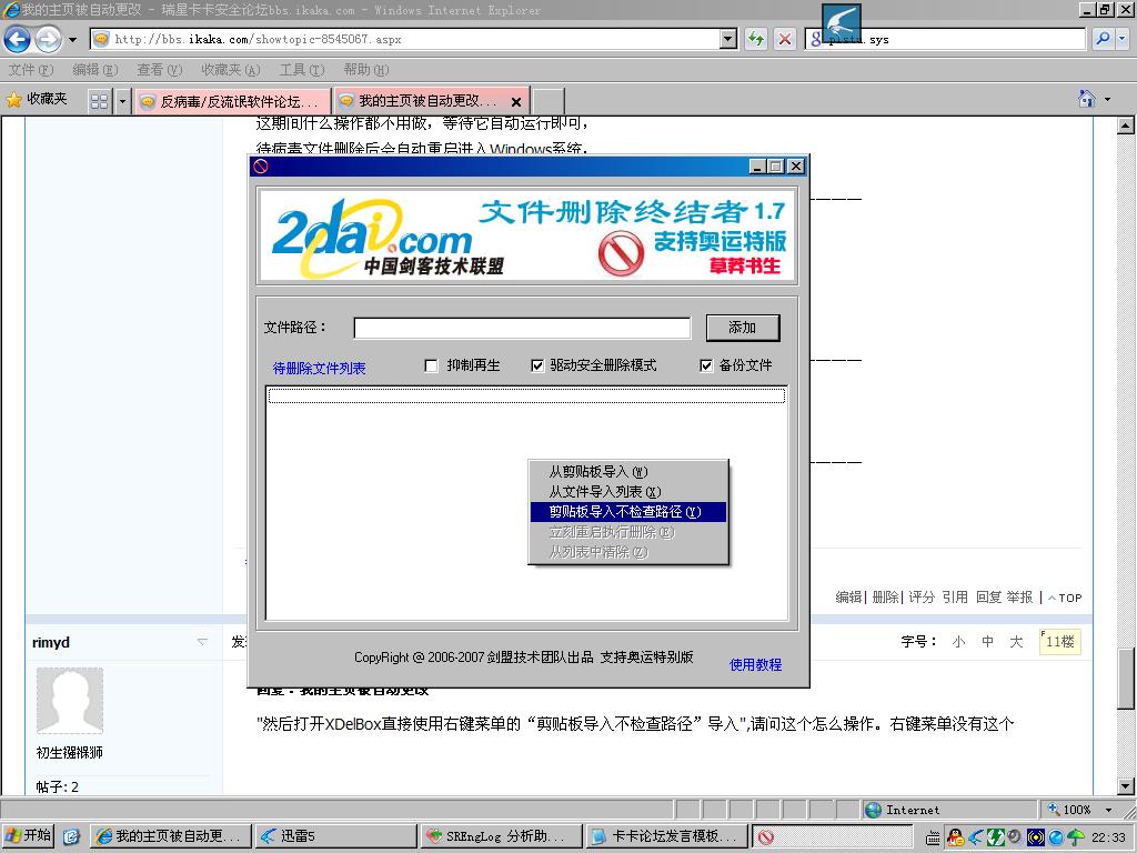 d:\program files\rising\rav\ravmon.exe这是日志中显示的进程,上面那个可能是以前安装的为卸载掉的残留或是被病毒替换