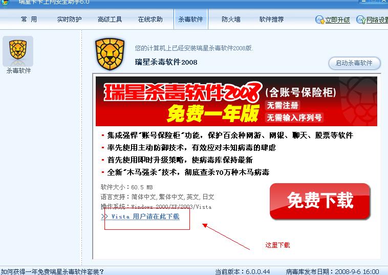 听说瑞星通过了VB100的认证便想尝试一下瑞星