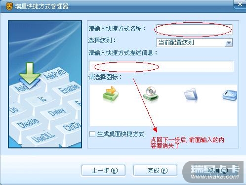 在杀毒快捷方式这点添加,选好路径点下一步,输入好信息,在点上一步,在点回下一步,会出现所输入的信息都消失了