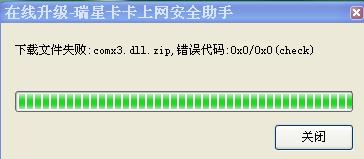 我升级时当下载到文件comx3.dll.zip时失败,错误代码:0x0/0x0(check),如下图: