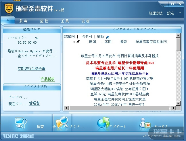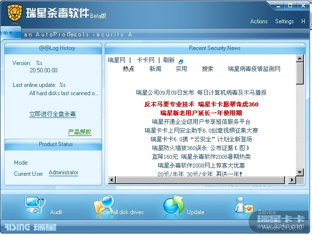 瑞星软件版本:瑞星2009 程序版本:21.00.10