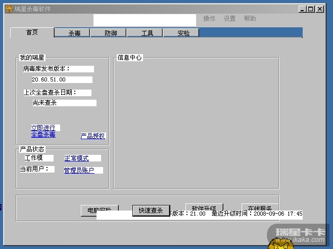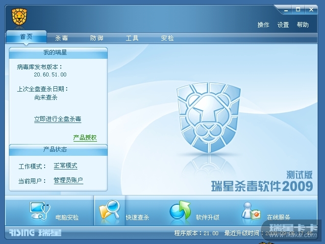 瑞星软件版本:瑞星2009 程序版本:21.00