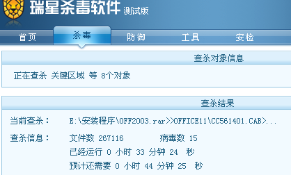 瑞星2009版查杀引擎测试