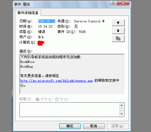 原来安装的是瑞星杀毒2008,后由于2009测试版出来了,想试用一番,怎么知道等我卸载瑞星杀毒2008,重启后,登陆是总提示系统驱动错误信息,具体参见事件查看器日志,据我查看,是这个出了问题,现在无法解决此问题,急求帮助.