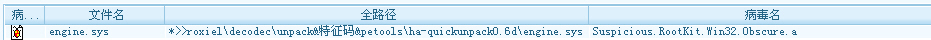 问题现象:01 HA-QuickUnpack0.6D,engine.sys驱动报毒