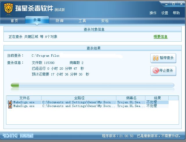 瑞星软件版本:21.00.50