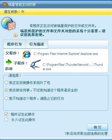 主动防御里也有许多语言问题。没有计算机知识基础的用户,只是想知所以然,至于其所以然并不是很重要。因此,瑞星可以在第一次安装时,让用户选择他们的计算机知识能力。如“我对计算机不是很了解”,“我对计算机有一定了解”。这样,在以后的使用中,瑞星可以根据用户的选择提供不同的对话框。若对计算机熟悉的人,提示的内容可以更加的专业话和详细,若对计算机不熟悉的人,提示的内容则要简单化。这样的处理方式,应该会使不同的人群得到想要的信息,赢得更多用户的好评。