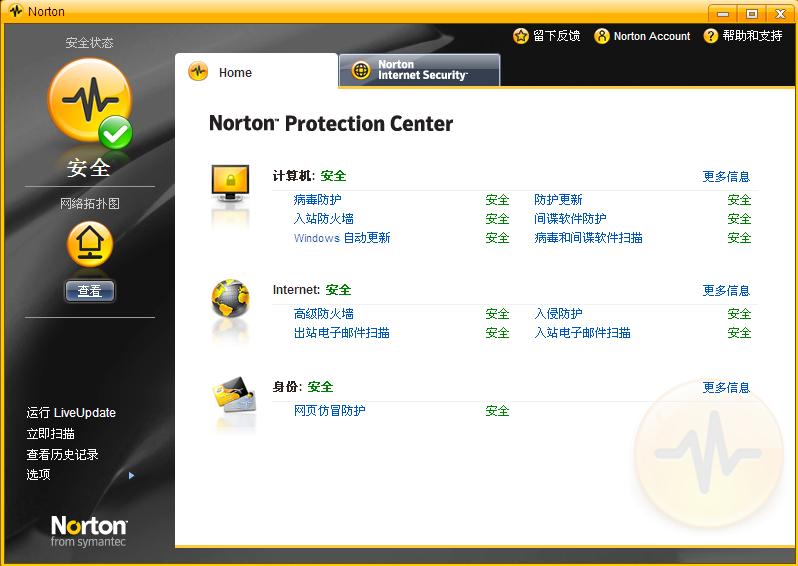 最后一点,界面的设计不必过于追求色调的统一。细看熊猫卫士,诺顿,卡巴斯基的主界面,就会发现它们都是以较有个性的色调为背景,而在信息显示处,采用白色为衬托。如: