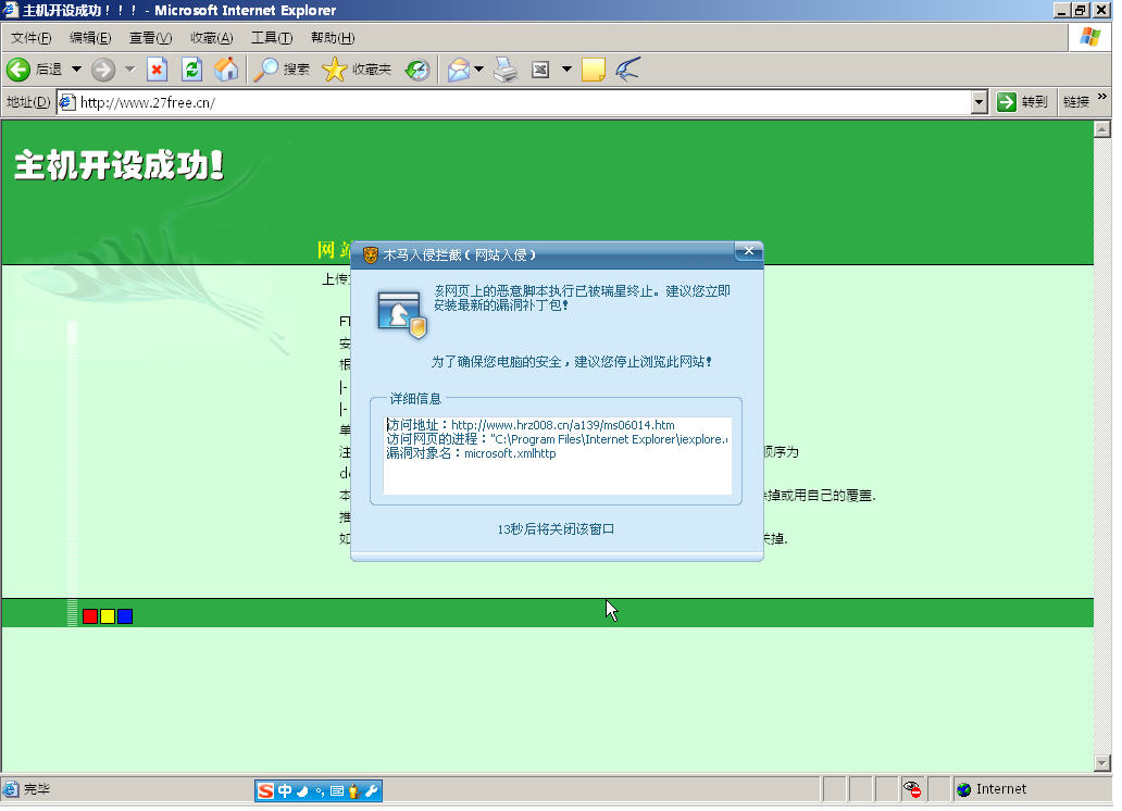 网页挂马是如今木马传播最主要的途径之一,这次的瑞星09版专门针对这个情况加入了“木马入侵拦截(网站入侵)”功能,效果到底怎么样呢?