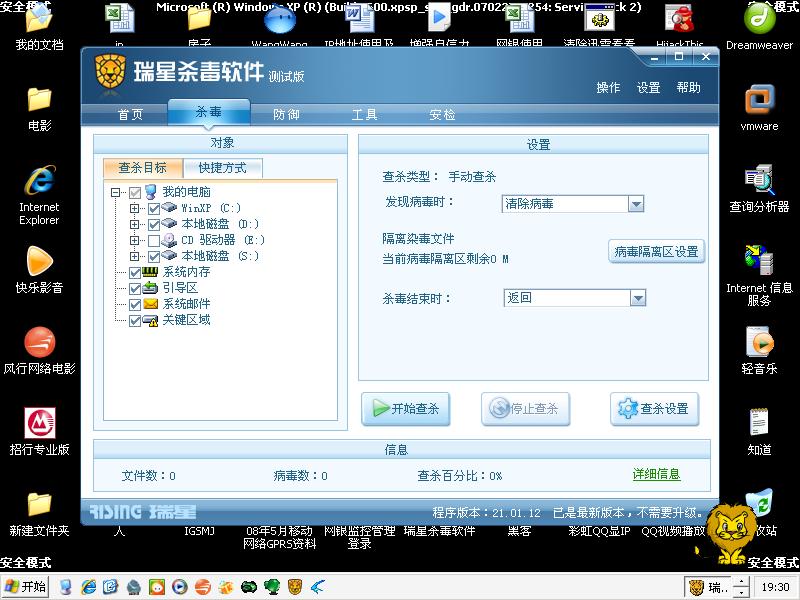 问题现象:在安全模式下,查杀病毒没有任何反应