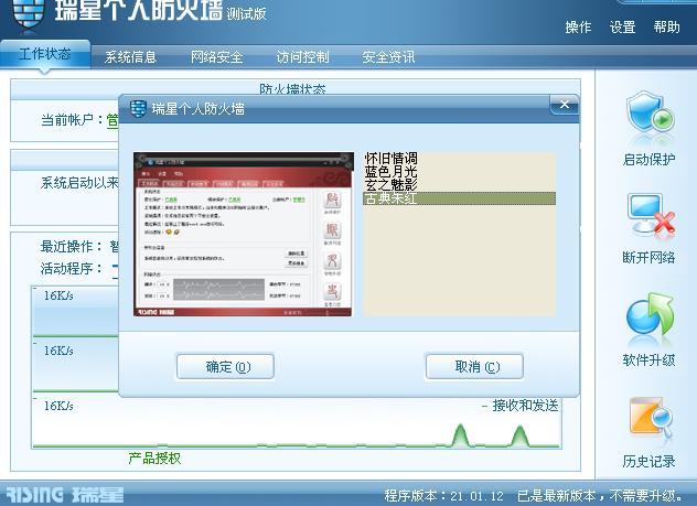 目前公测版本皮肤界面并不完全,建议楼主按默认界面,先修复一下防火墙,方法:开始--程序--瑞星个人防火墙--修复。
