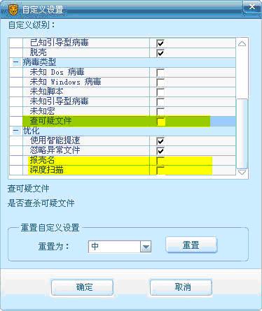 测试中发现了瑞星的扫描设置里面增加了深度扫描和扫描可疑文件的选项,这是否是瑞星的启发扫描呢,这还需我们进一步进行观察。