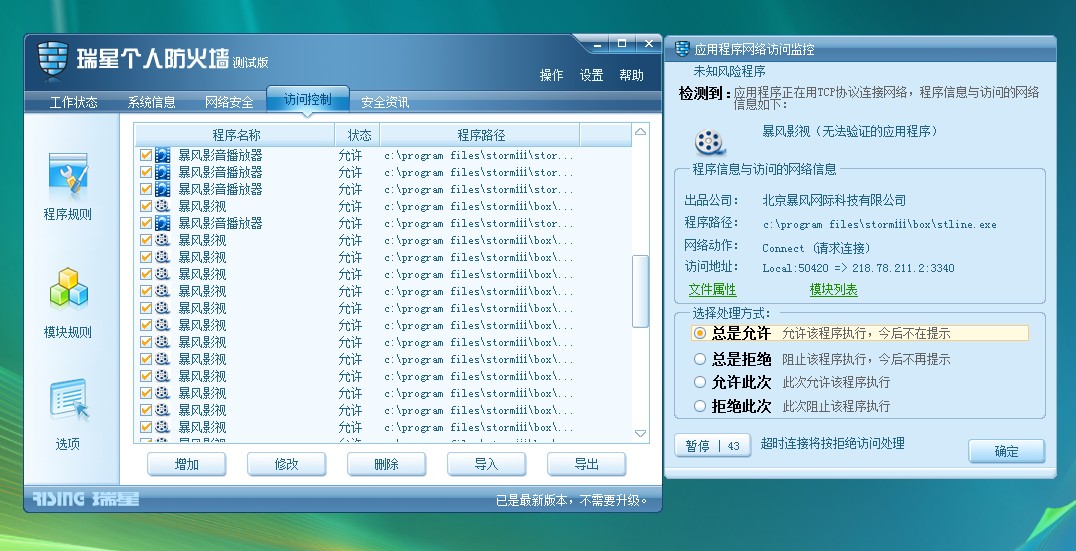 瑞星防火墙与暴风影音