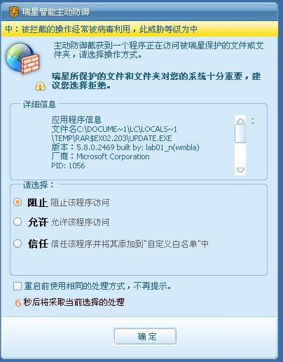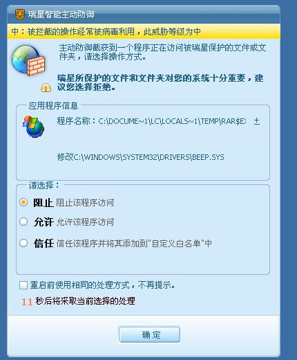 勾上“重启前使用相同处理方式”,但重启后还是会弹。而且该病毒的动作还挺多。建议增加“黑名单”解决此类情况。
