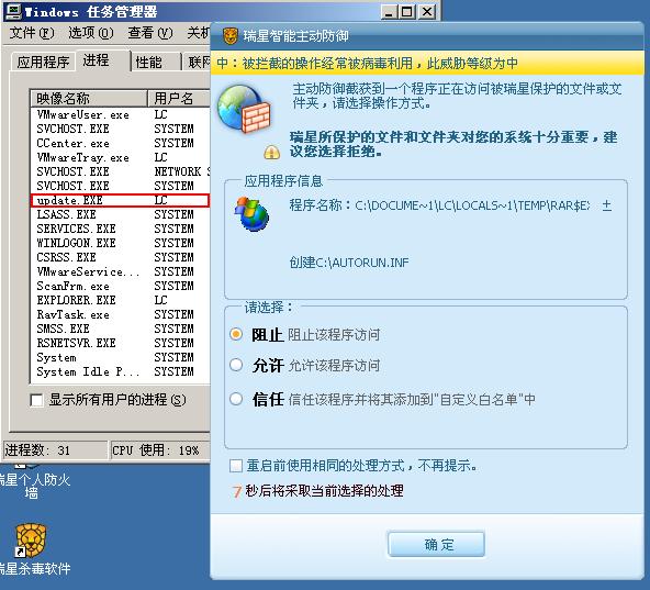 瑞星主动防御及自我保护测试----瑞星VSAutorun类木马