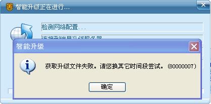 出现问题前的操作步骤:手动升级,提示获取升级文件失败,请您换其他时间段尝试(80000007)