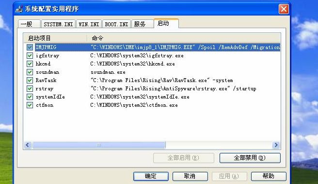 我不是不能关闭,而是不知道如何关闭,不知道通讯簿在启动项中表示什么样的图标或所代表的英文。