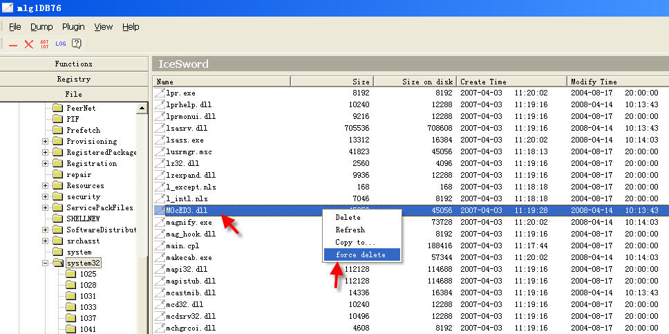 有了SSM的这些监控信息,用IceSword处理此毒就比较容易了。