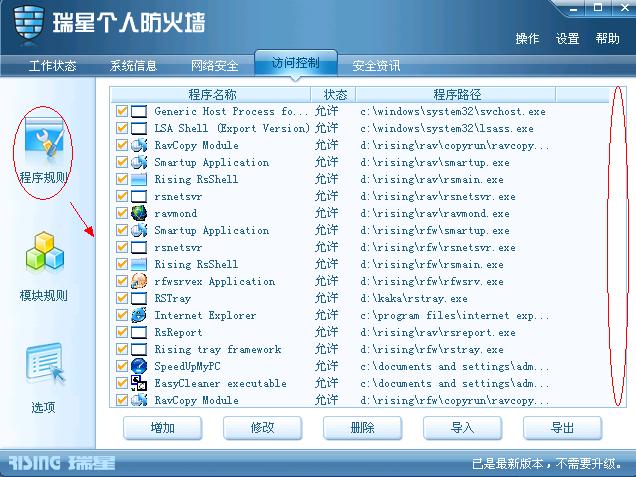 问题现象:打开防火墙,点访问控制,在点安全资讯,在点回访问控制,出现程序规则这的滚动条消失了,只有白条