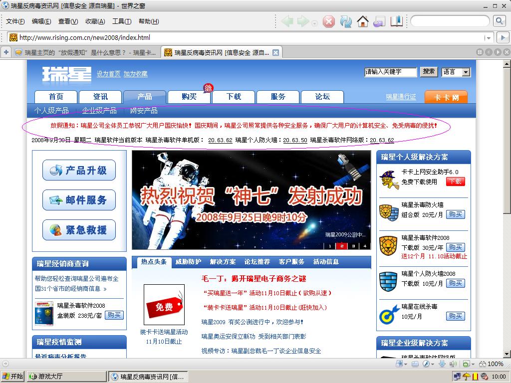 [已解决] 瑞星主页的“放假通知”是什么意思?